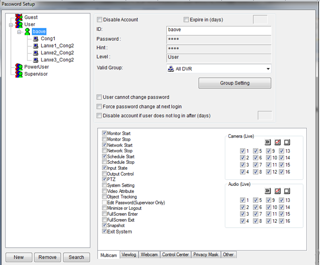 – Phân quyền: Phần mềm cho phép phân quyền truy cập camera cho từng User và tới từng camera một.